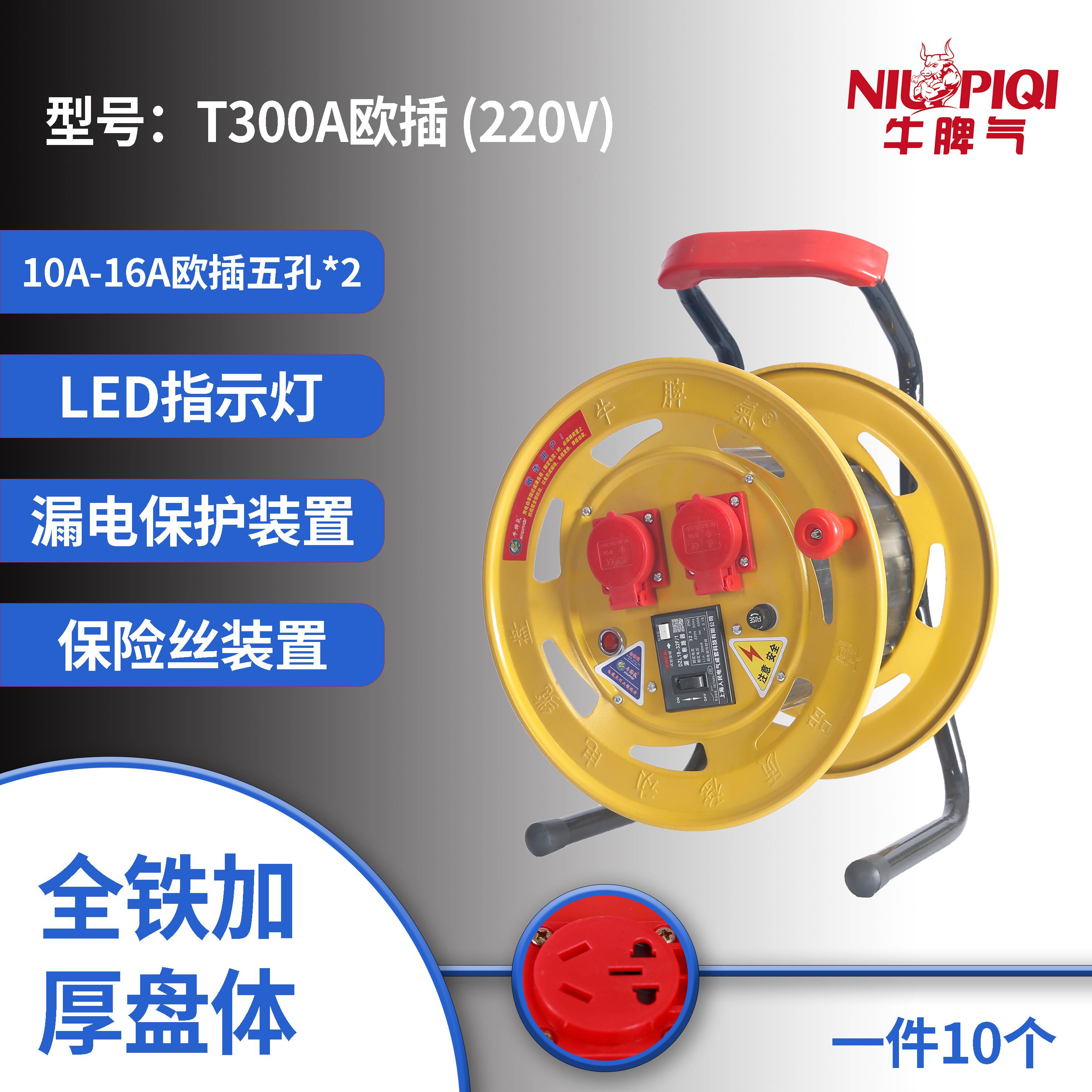 牛脾气电缆盘T300欧插 220V